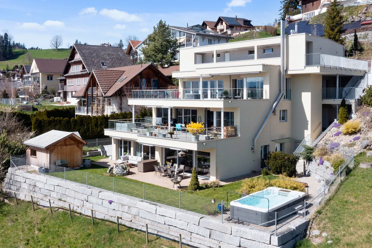 Dieses wunderschöne Anwesen verfügt über 4,5 Zimmer, 3 Schlafzimmer, ein Badezimmer und einem separaten Gäste-WC. Der grosse Gartensitzplatz mit auserlesenen Bodenplatten verlegt und einer Fläche von 63,8 m² lädt zum Entspannen und Geniessen des atemberaubenden Ausblicks an unverbaubarer kinderfreundlicher Südhanglage ein.